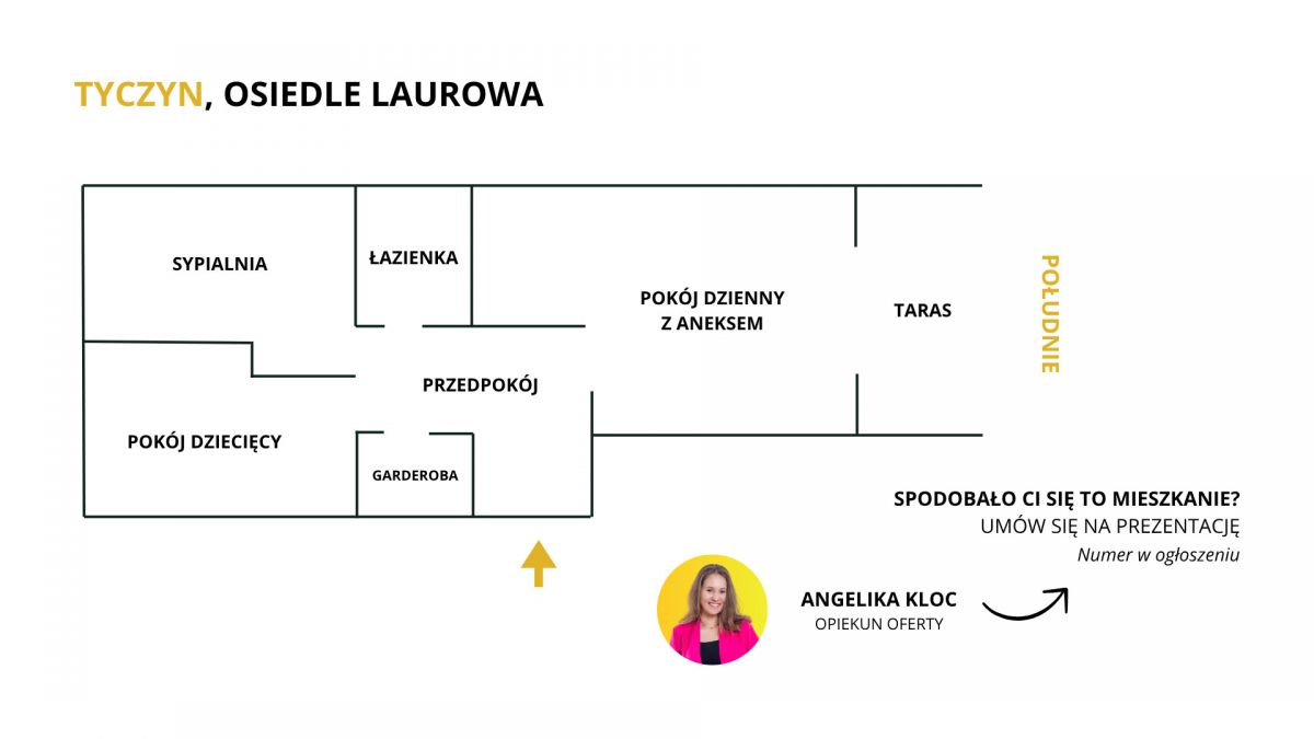 Tyczyn, ul. Laurowa - 57,96 m2, pokój dzienny z aneksem kuchennym, sypialnia, pokój dziecięcy, garderoba, łazienka, przedpokój, taras + prywatny ogródek, komórka lokatorska (2 m2), parter, mieszkanie wykończone pod klucz z wysokiej jakości materiałów, gotowe do wprowadzenia, parking z ogólnodostępnymi miejscami