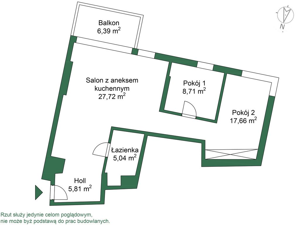 - salon z aneksem 27,72 m² z wyjściem nabalkon 6,39 m2