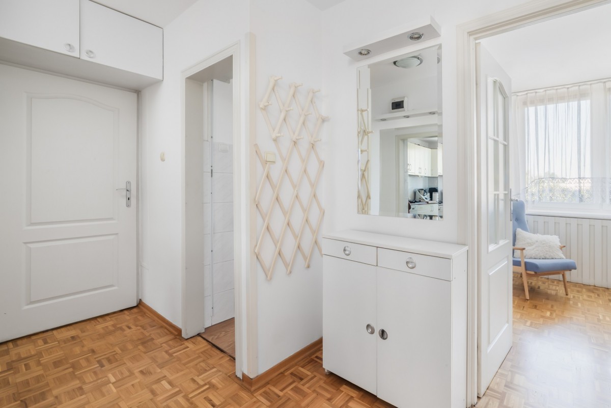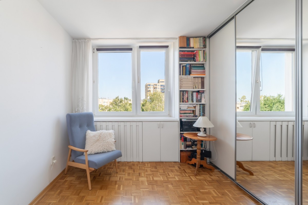 Okolica jest wyjątkowo cicha i zielona, a widok z mieszkania rozciąga się na korony drzew. Mimo bliskości głównych arterii - Alei Wilanowskiej i ulicy Witosa - mieszkanie pozostaje osłonięte pasmem zieleni, co zapewnia ciszę i komfort. W zasięgu kilku minut spacerem znajduje się pełna infrastruktura miejska: sklepy, apteki, przychodnia, szkoły i przedszkola. Doskonała komunikacja miejska umożliwia szybki dojazd do centrum i innych dzielnic Warszawy.