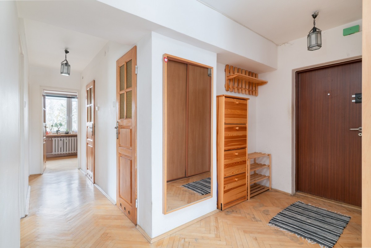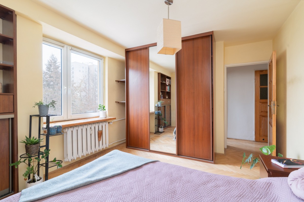 Mieszkanie jest trójstronne, dobrze doświetlone i jednocześnie ciche, oddalone od ruchliwej ulicy, w sąsiedztwie ogródków działkowych. Układ zapewnia wyraźny podział na część dzienną i prywatną. Duża loggia z wyjściem z salonu zwiększa komfort codziennego użytkowania. Lokal daje możliwość przeprowadzenia remontu lub odświeżenia zgodnie z indywidualnymi preferencjami.