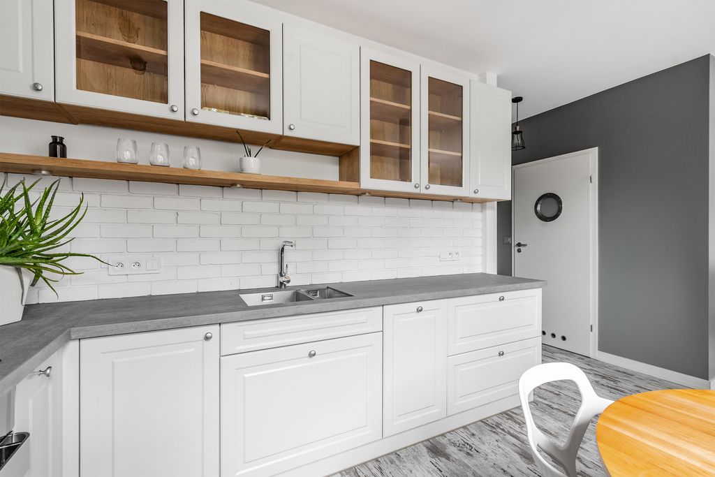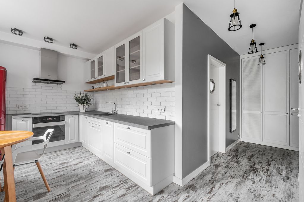 Dobrze rozplanowany układ – z opcją oddzielenia kuchni od salonu. Kuchnia z oknem i kącikiem jadalnianym to duży atut przy tym metrażu. W salonie, sypialni i przedpokoju znajdują się szafy w zabudowie z żaluzjowymi frontami.