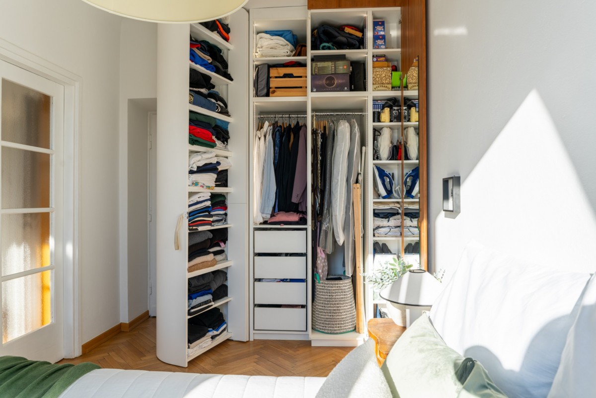 Mieszkanie jest wysokie (2,80 m), jasne i niezwykle ciche. Okna pokoi wychodzą na południe, dzięki czemu wnętrza pozostają naturalnie doświetlone przez cały dzień. W sypialni uwagę przyciąga rozkładana szafa wykonana na zamówienie, pomysłowo łącząca estetykę z funkcjonalnością. Do mieszkania przynależy piwnica, a w budynku niedawno odremontowana została klatka schodowa.