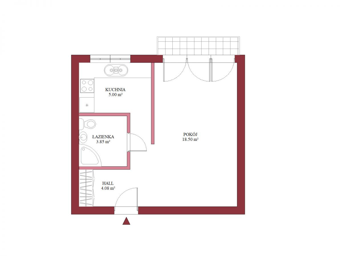 Mieszkanie ma możliwości aranżacyjne aby przerobić je na 2 pokoje z aneksem kuchennym.