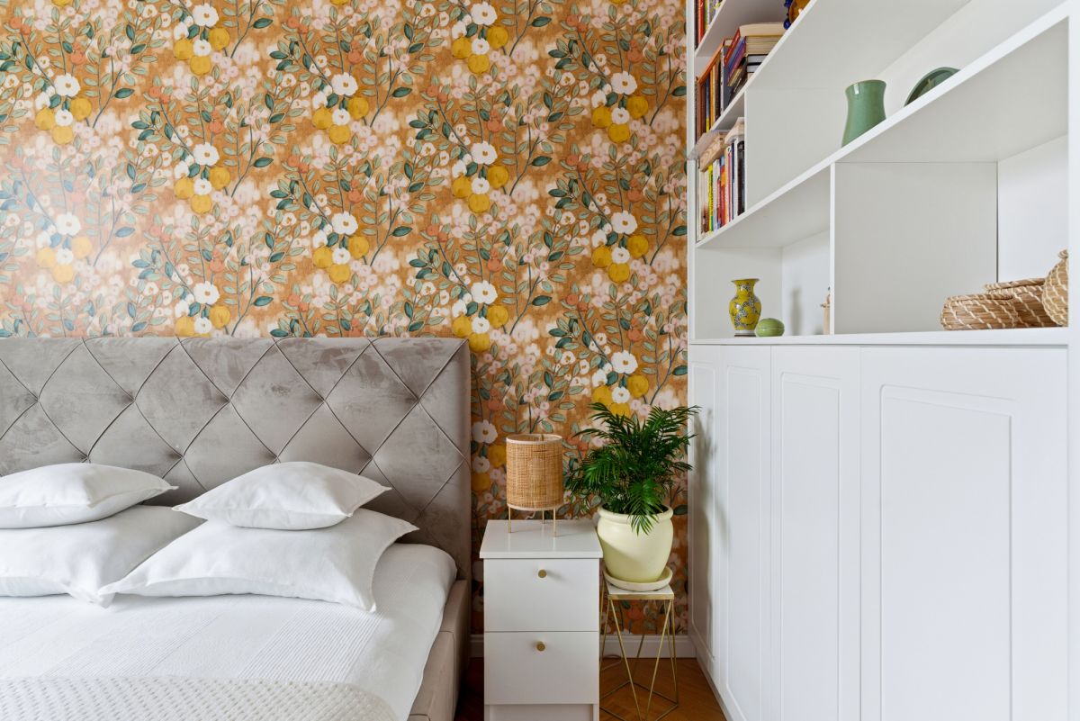 Sypialnia zapewnia spokojny wypoczynek, a duża szafa na wymiar pozwala na utrzymanie porządku.