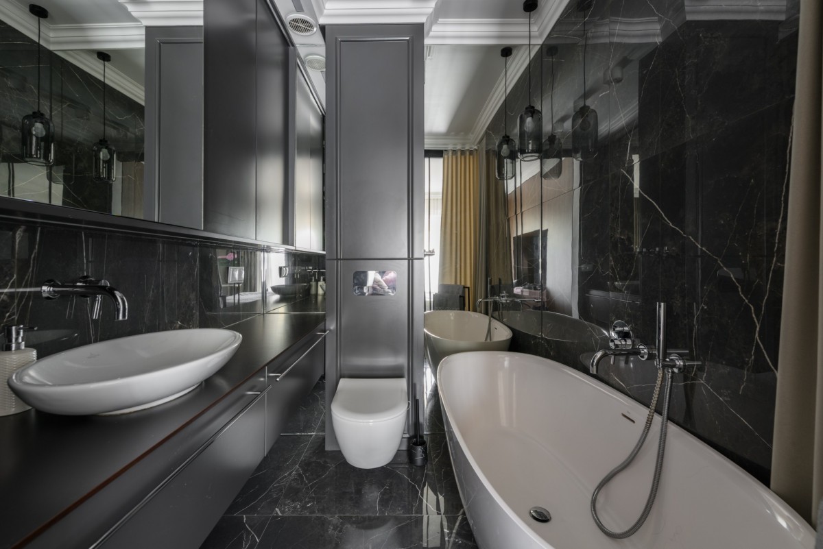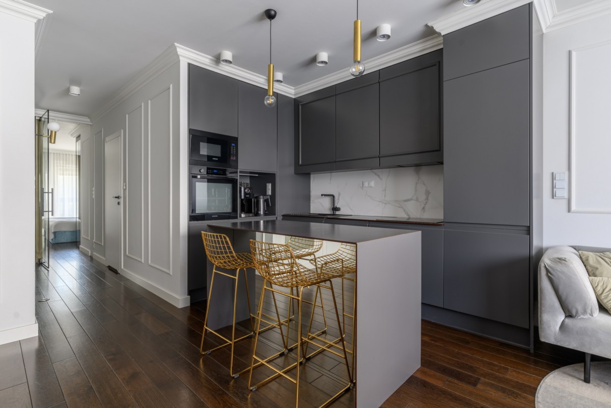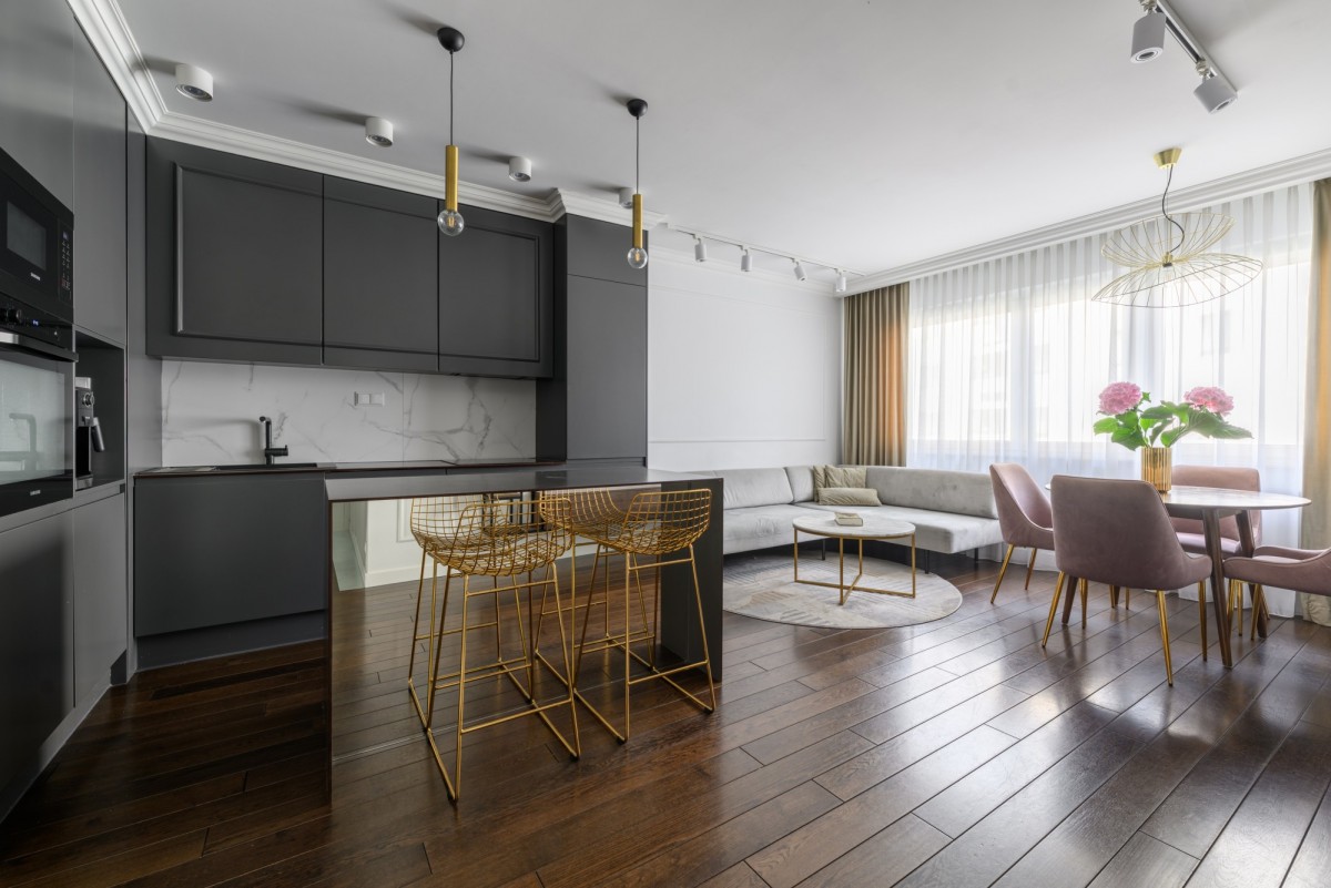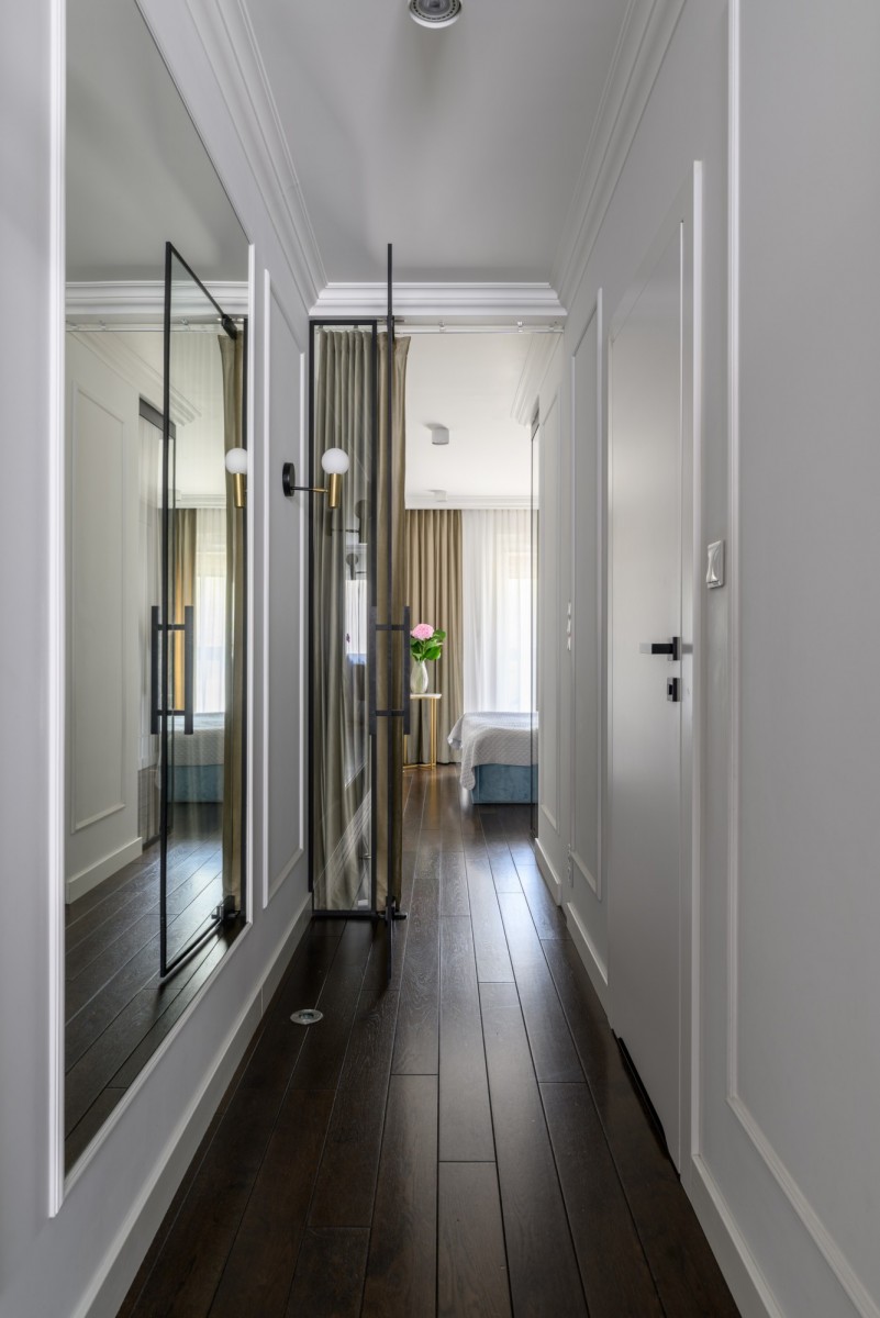 Mieszkanie zaprojektowane przez architekta wnętrz i wykończone z użyciem wysokiej klasy materiałów - dębowa podłoga, zabudowy stolarskie i szklane na zamówienie, ceramika Villeroy & Boch. Gotowe do wprowadzenia, oferuje przemyślane rozwiązania dla wymagających nabywców.