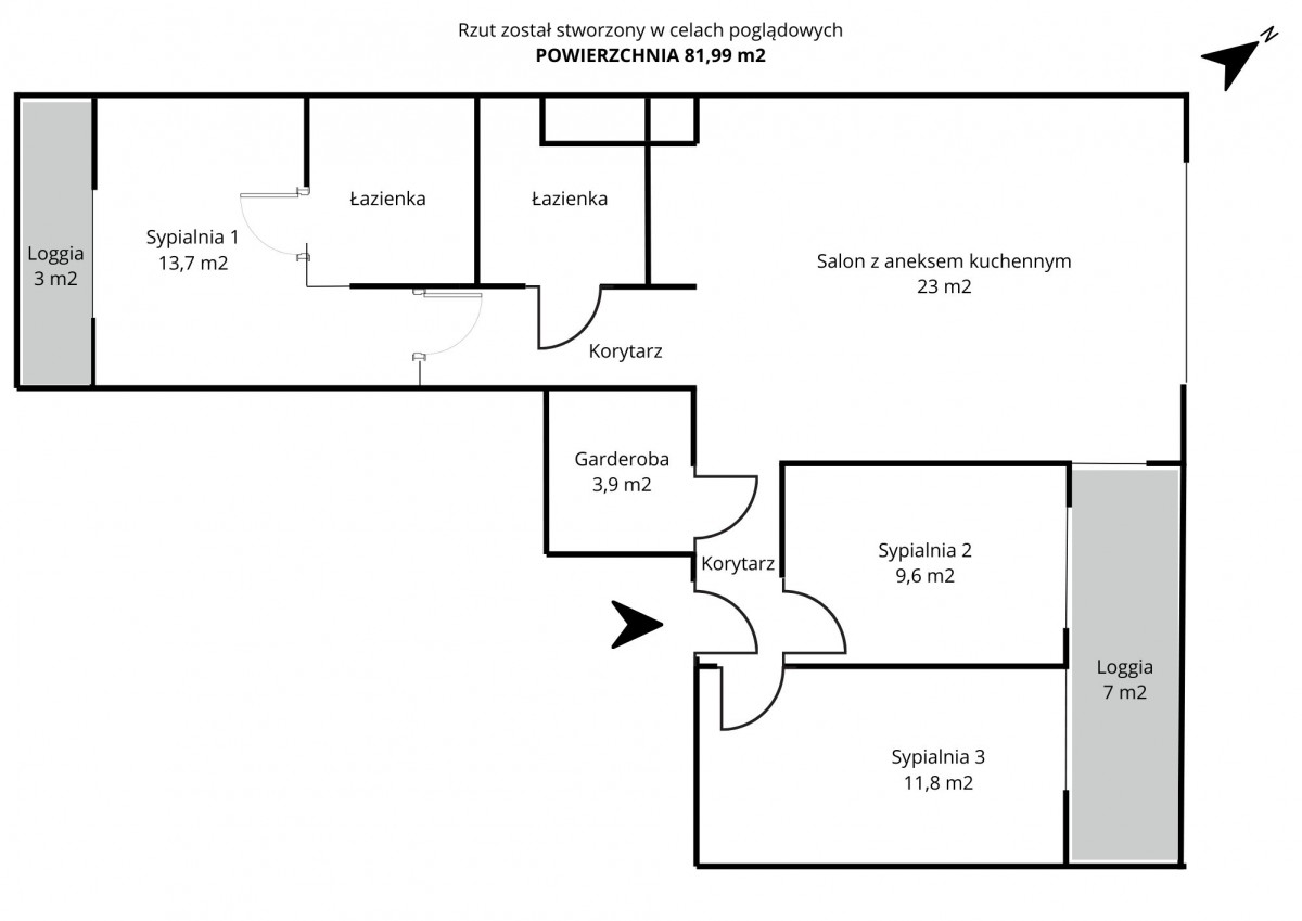 - trzy sypialnie - w tym jedna z loggią