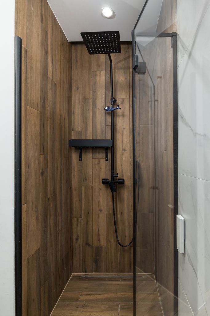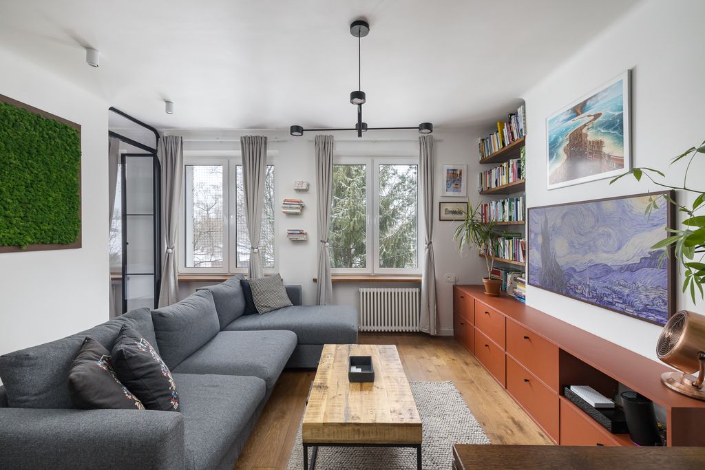 Mieszkaniu wykończone z wysokiej jakości materiałów – min.: dębowa podłoga, parapety oraz blaty kuchenne. Na ścianie w sypialni cegła dekoracyjna. Wszystkie meble projektowane na wymiar, co daje dużo możliwości do przechowywania . W mieszkaniu zamontowano również system inteligentnego oświetlenia Philips Hue - światłem można sterować z poziomu smartphona, także na odległość.