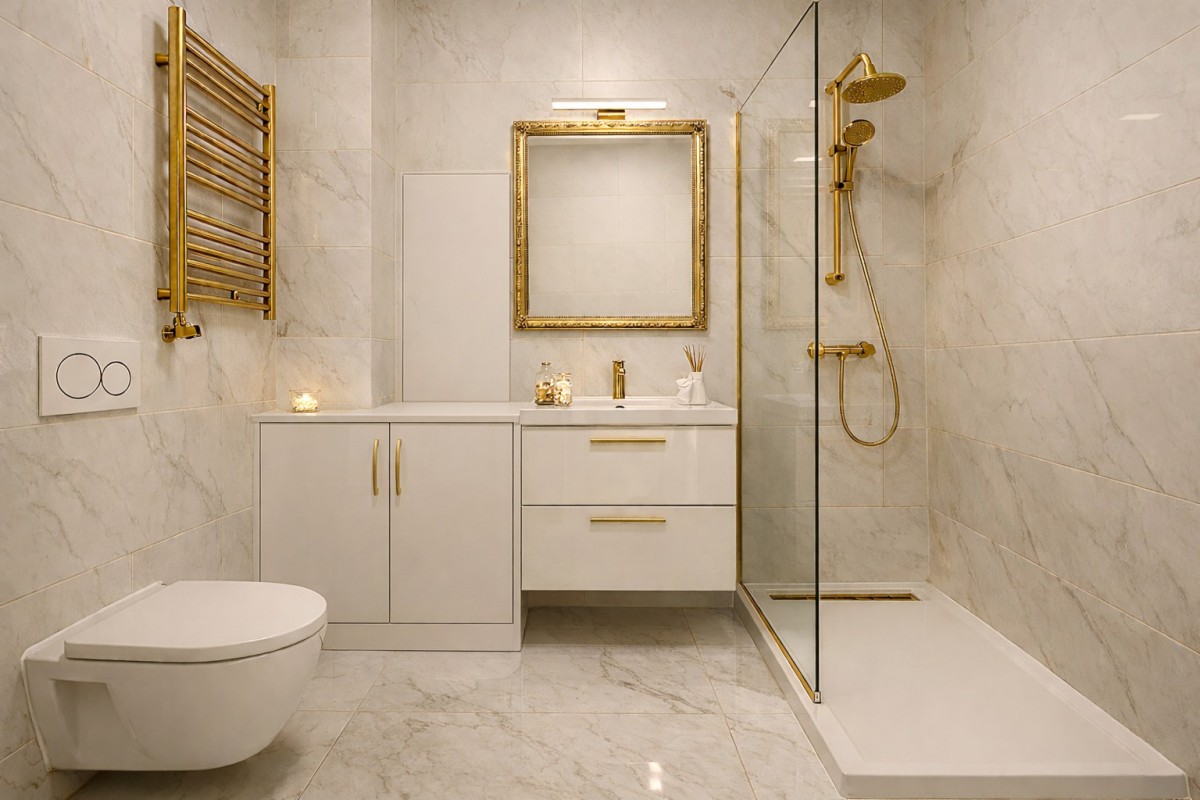 - Łazienka z miejscem na prysznic lub wannę