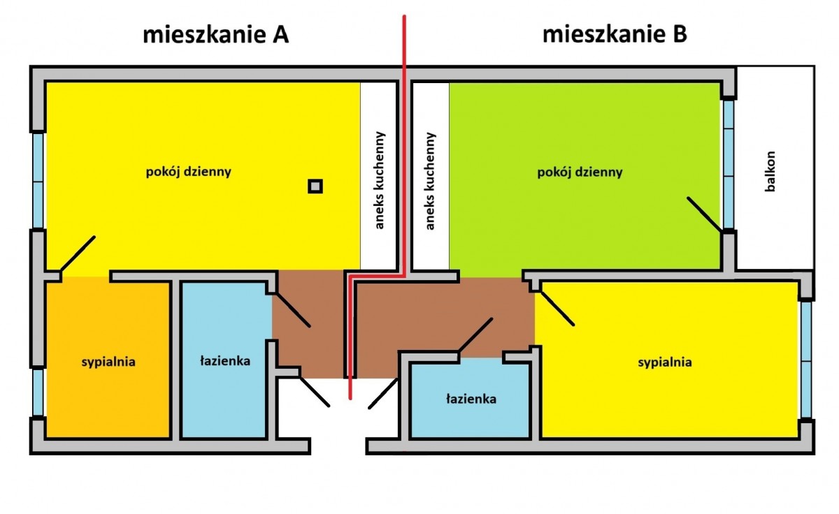 Taki podział wewnętrzny stwarza wiele możliwość np. zamieszkania w jednym mieszkaniu i wynajmowania drugiego.