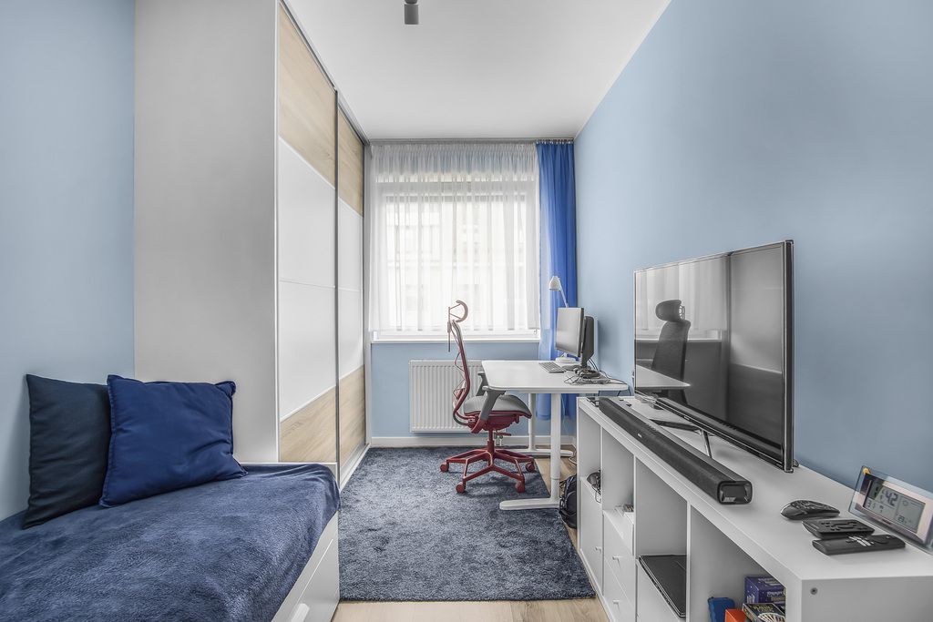 • Dwie niezależne sypialnie z szafami w zabudowie,