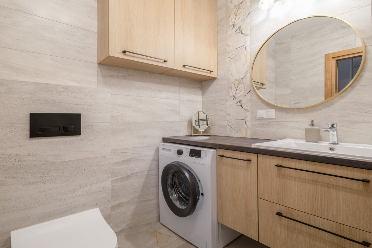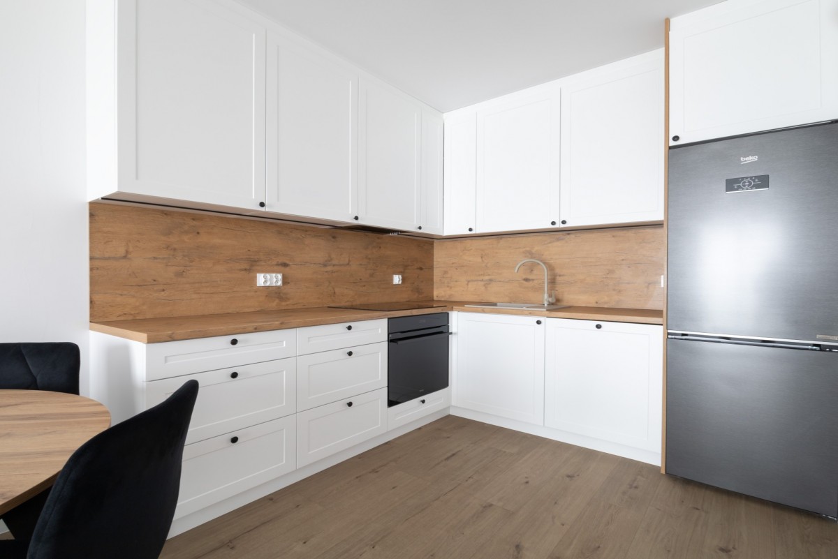 - Nowoczesne wyposażenie: Kuchnia z nową zmywarką, piekarnikiem, lodówką i płytą indukcyjną. Wszystko zaprojektowane z dbałością o detale.