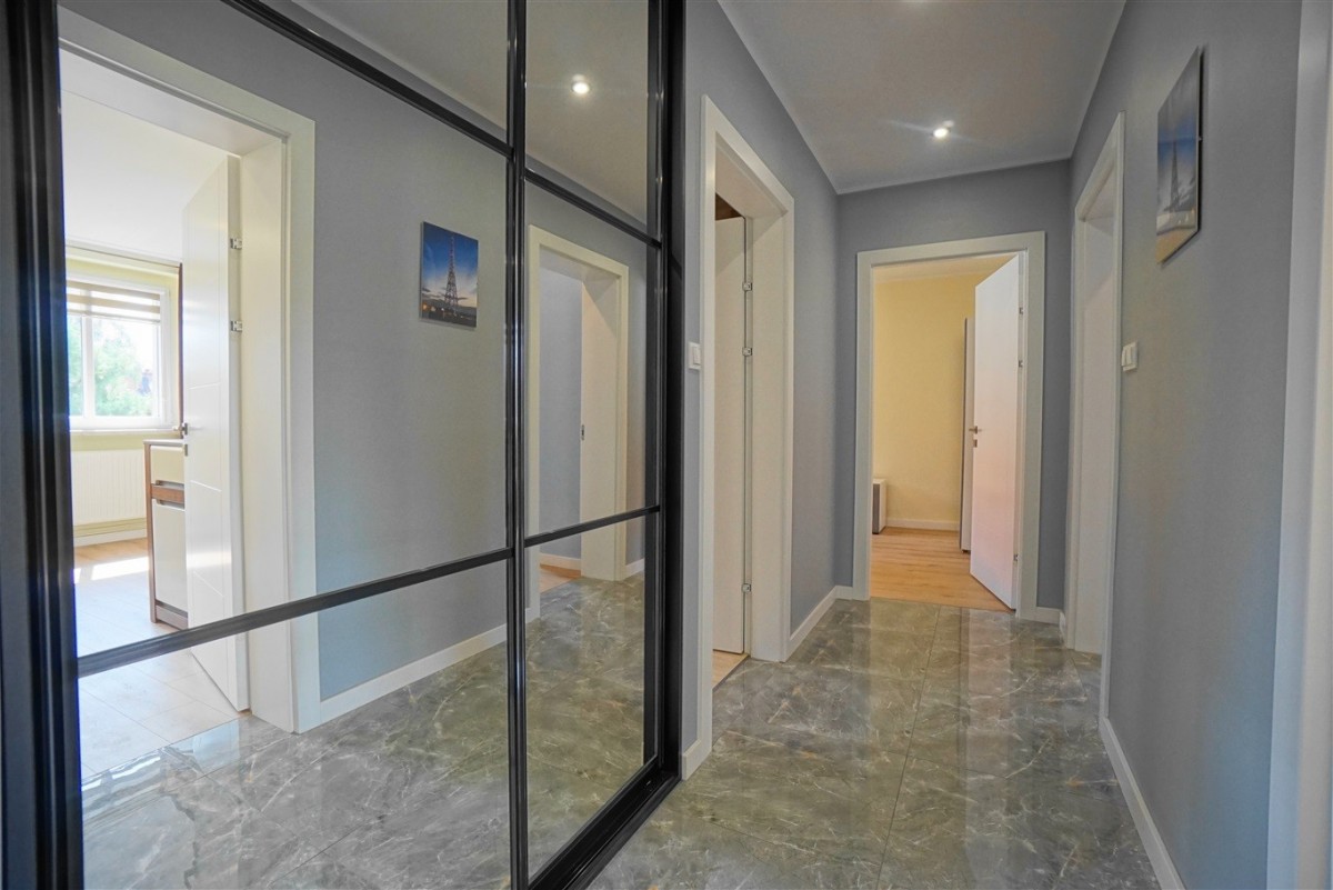- Dużego przedpokoju (dwie szafy zabudowane z lustrem)