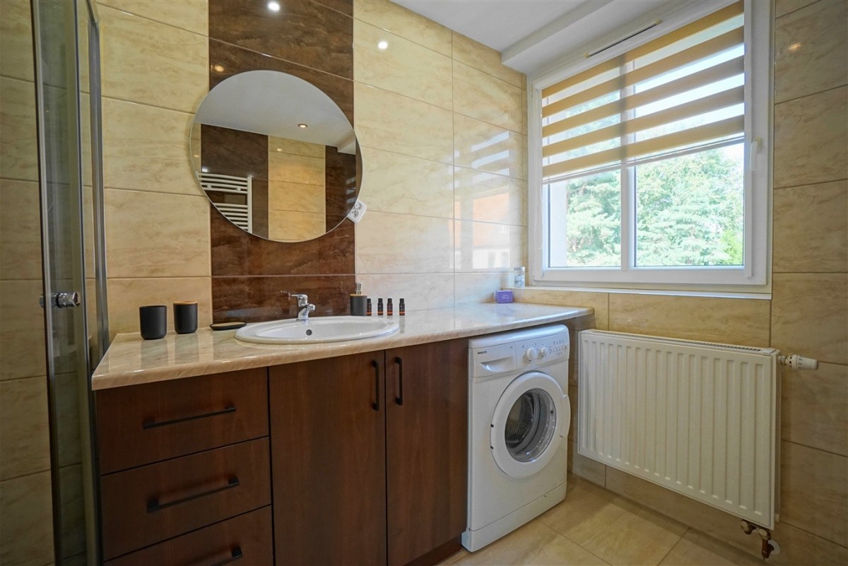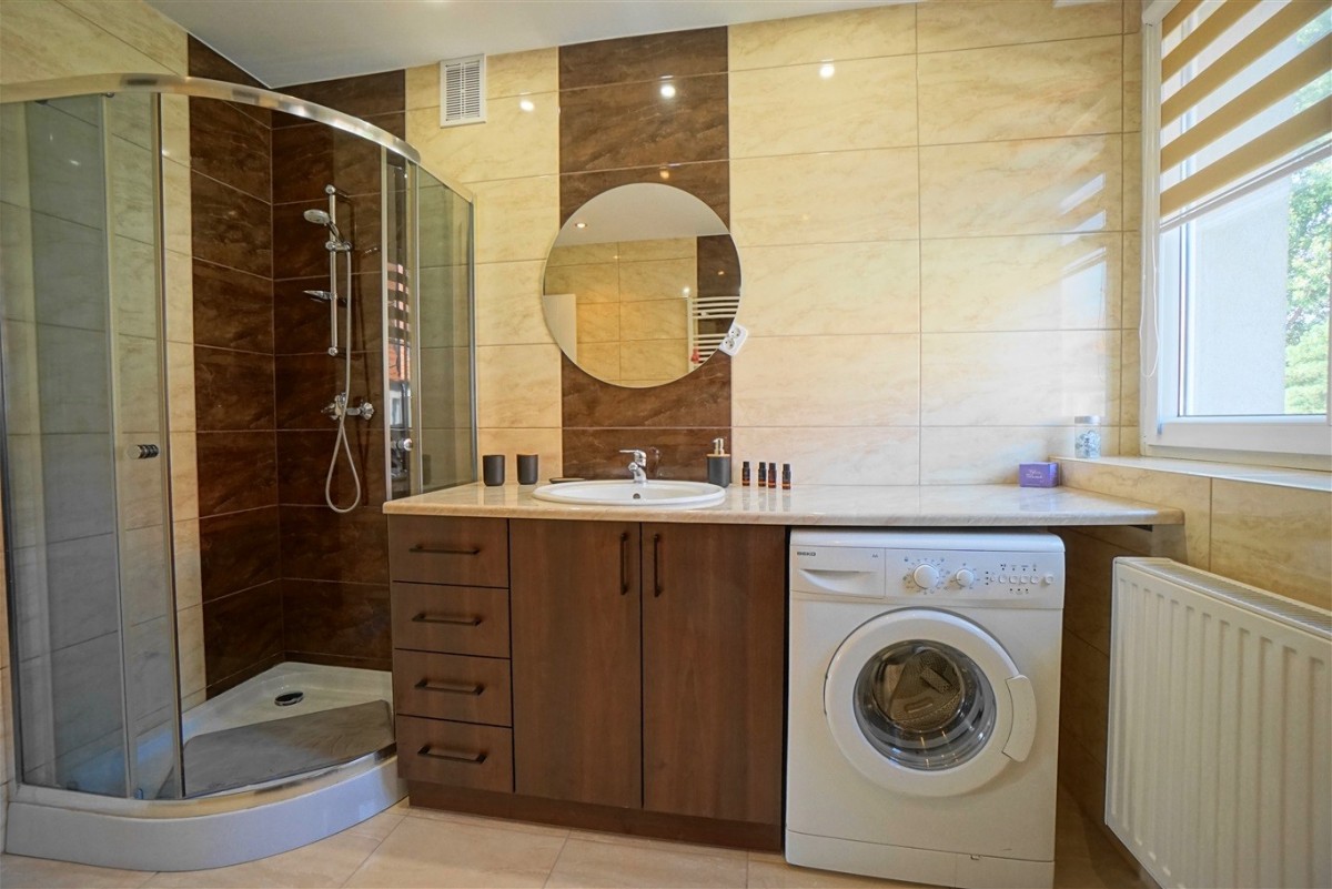 - Przestronnej łazienki(kabina prysznicowa, pralka)