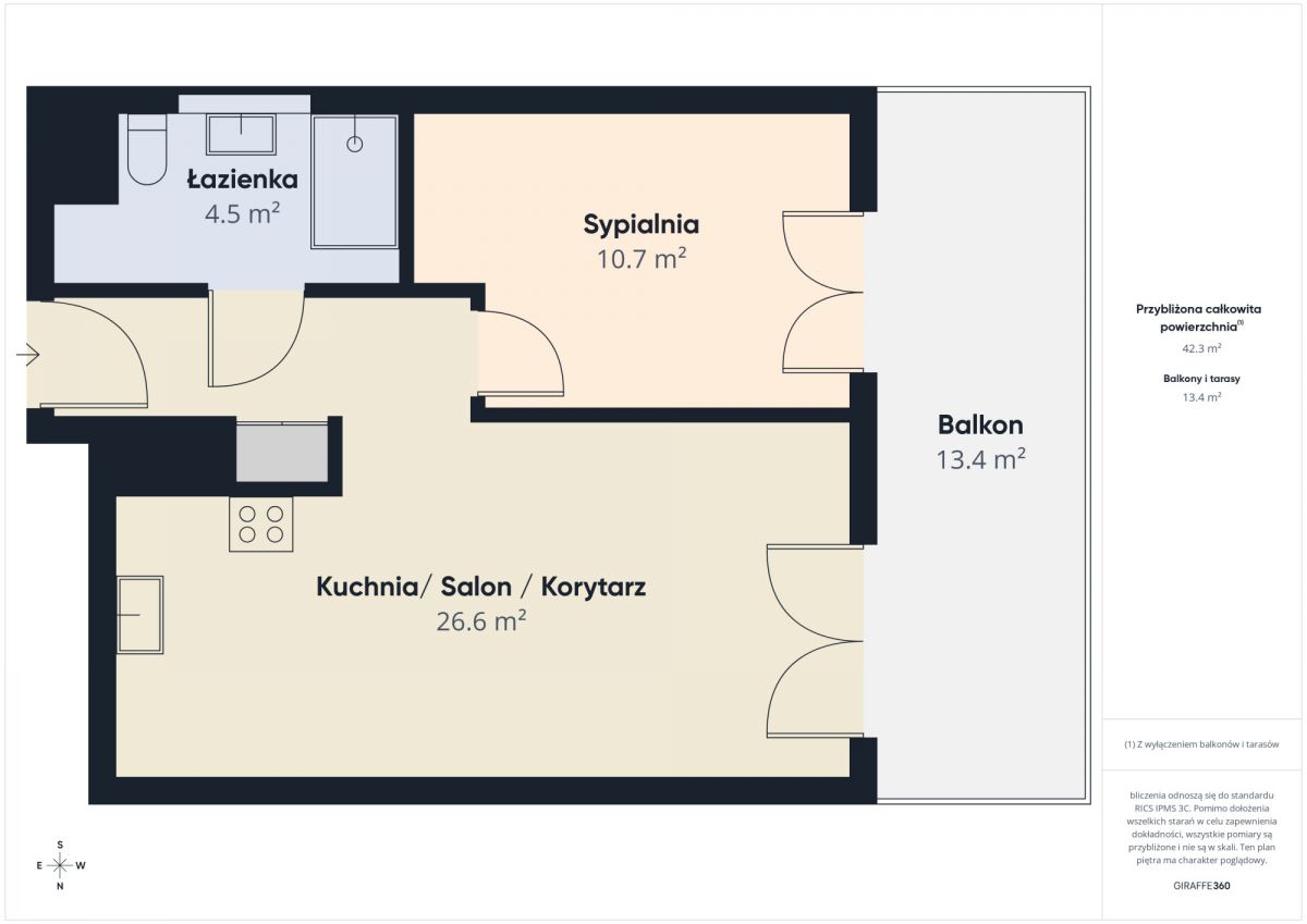 - Przestronny salon z aneksem kuchennym oraz wyjściem na taras;