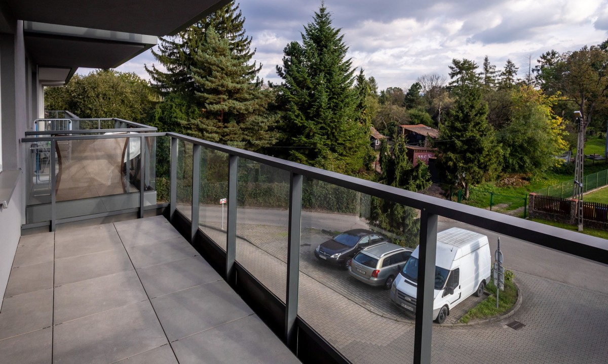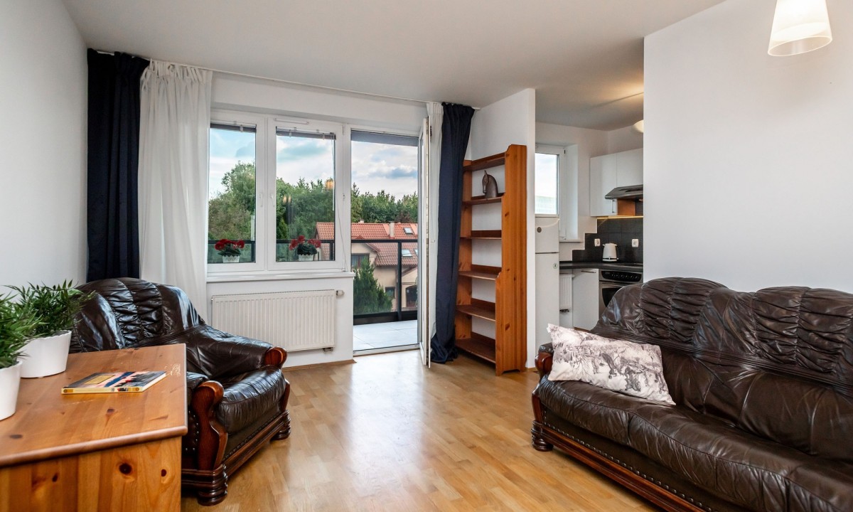Do wynajęcia nowoczesne, dwupokojowe mieszkanie o powierzchni 45 m², z balkonem i garażem indywidualnym (17,9 m²), położone na 2. piętrze budynku przy ul. Rozdroże 21 - tuż przy ul. Kapelanka i w niedalekim sąsiedztwie zielonych terenów Zakrzówka.