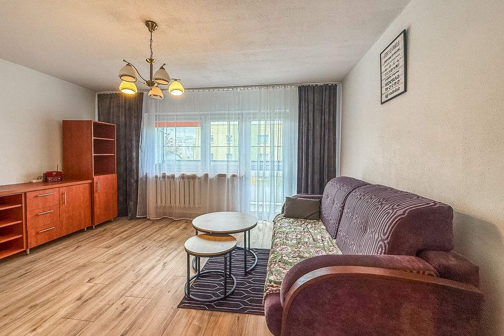 Mieszkanie jest rozkładowe i składa się z 3 pokoi (przestronnego salonu i dwóch sypialni), oddzielnej kuchni oraz łazienki i WC. Okna wychodzą na wschód i zachód, co zapewnia dobre doświetlenie. Wysokość pomieszczeń wynosi 260 cm, co dodatkowo potęguje wrażenie przestronności. Wnętrze jest wyposażone umeblowane, a w kuchni znajdują się wszystkie niezbędne sprzęty AGD: lodówka, piekarnik, płyta gazowa oraz zlewozmywak. Mieszkanie jest gotowe do wynajmu, położono nowe panele na podłogach zaś łazienka i wc są po kapitalnym remoncie.