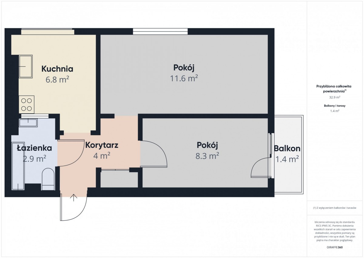 Na wynajem mieszkanie o p.u. 32,90m2 w Olsztynie przy ul Warszawskiej.