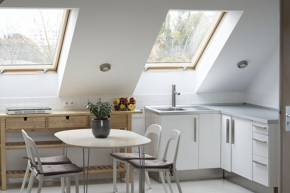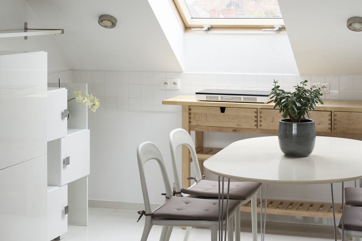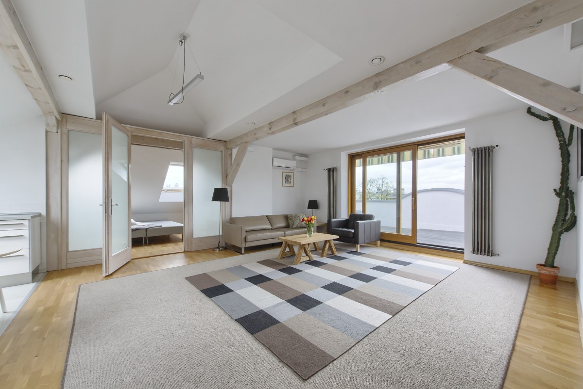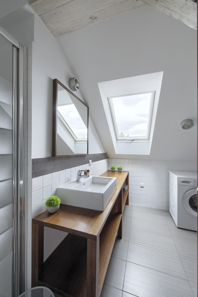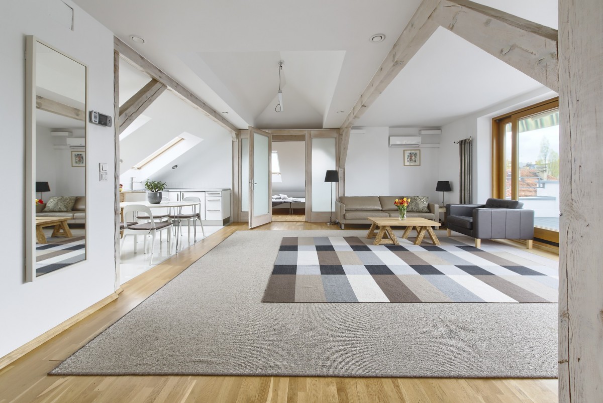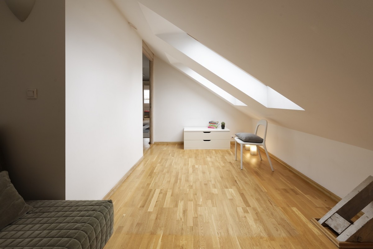 - zachowane belki, skosy, nadają mieszkaniu niezwykły klimat