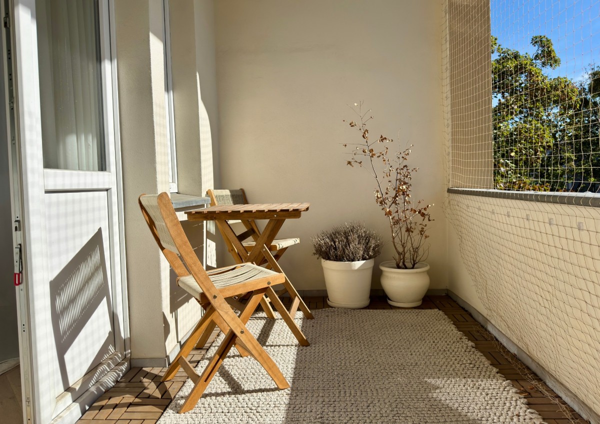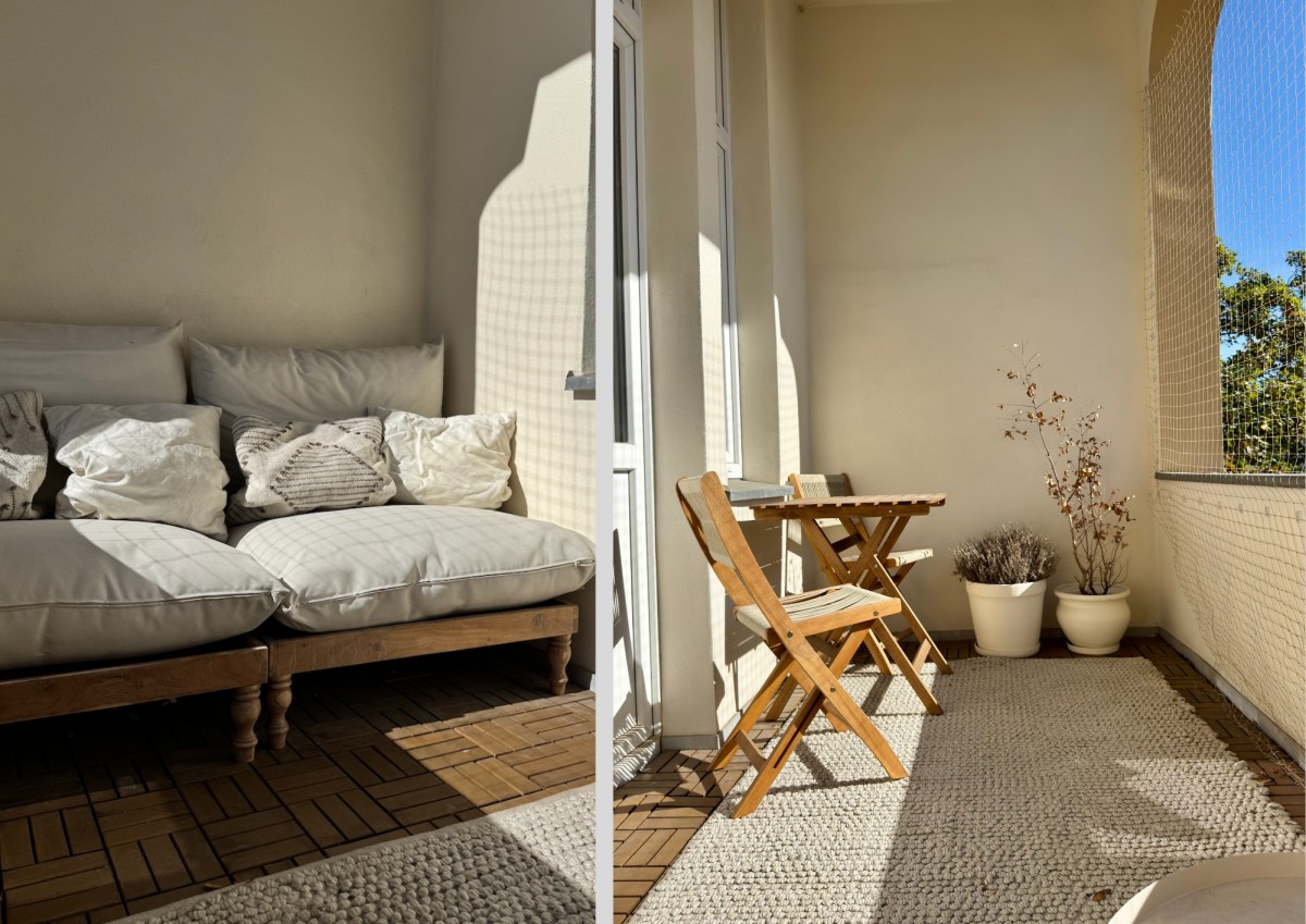 Prosto z salonu prowadzi wyjście na klimatyczną loggię, wygospodarowo tu miejsce na stolik i 2 krzesła - idealne miejsce na poranną kawę oraz strefę wypoczynku - sofę wraz ze stolikiem - idealne miejsca na spędzenie spokojnego wieczoru z książką.