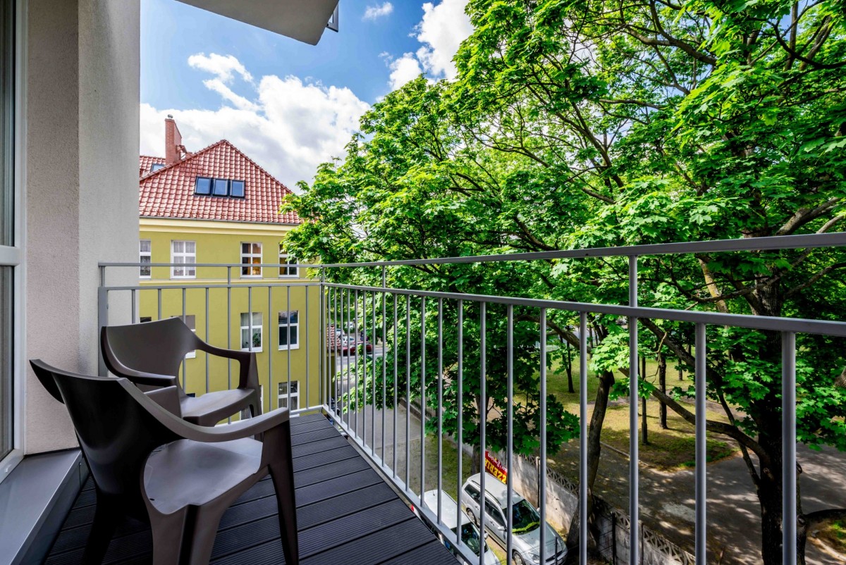 - balkon od cichej i zielonej strony budynku;