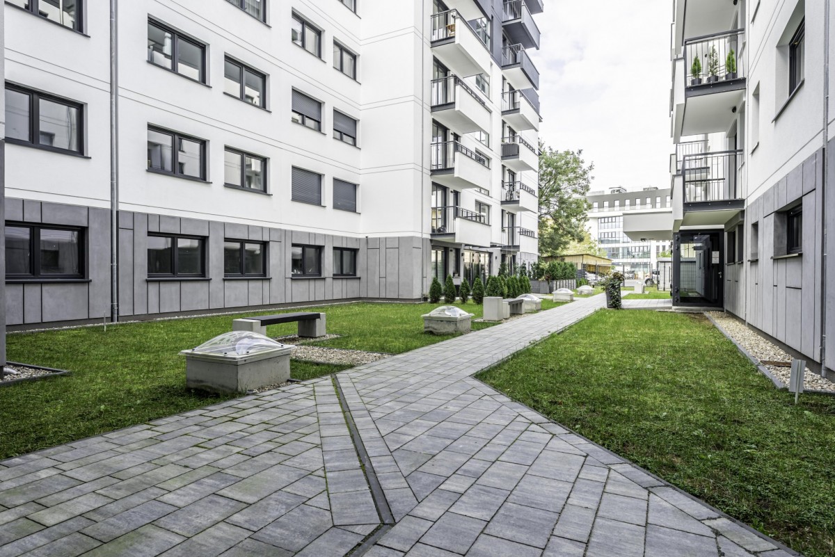 - dozorowane osiedle, wjazd tylko dla mieszkańców, duży zadbany i estetycznie zagospodarowany teren