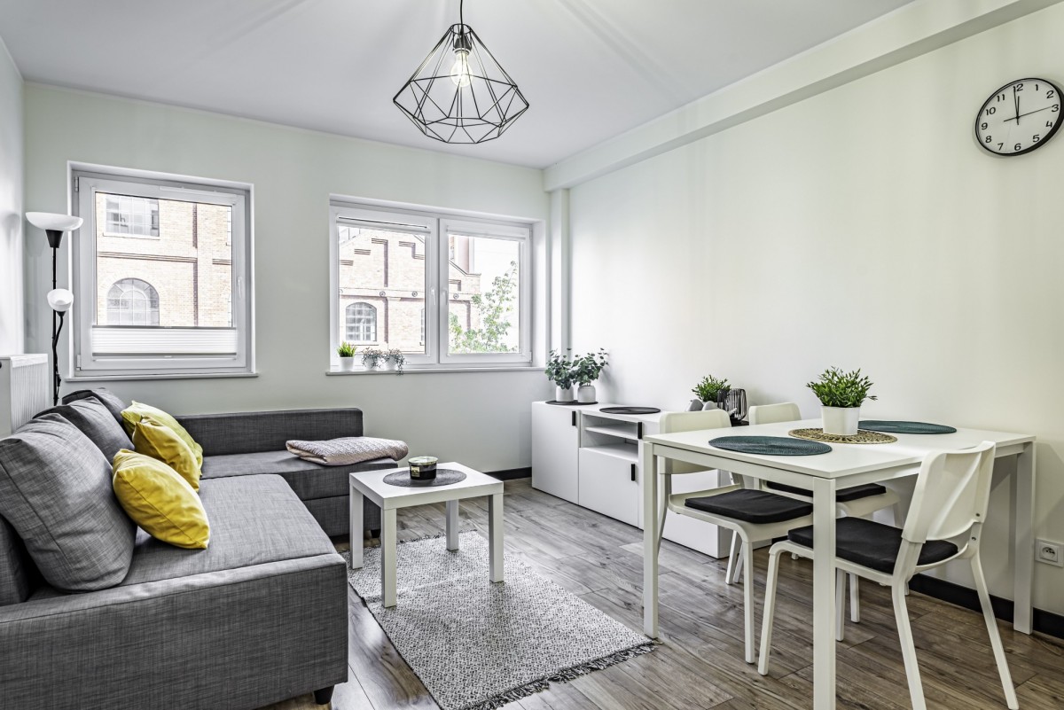 Mieszkanie jest umeblowane i wyposażone w niezbędne sprzęty, gotowe do wprowadzenia się i przyjemnego mieszkania.