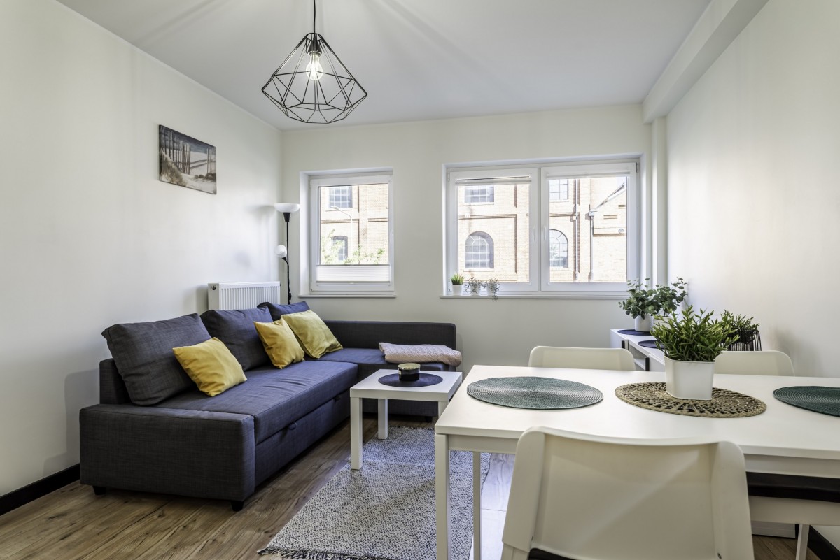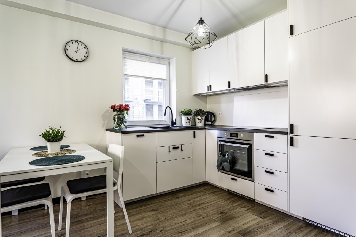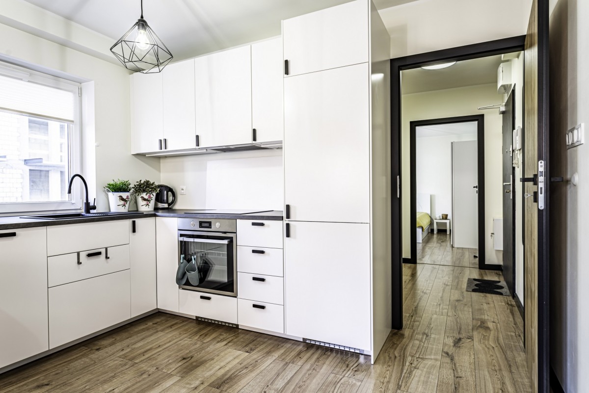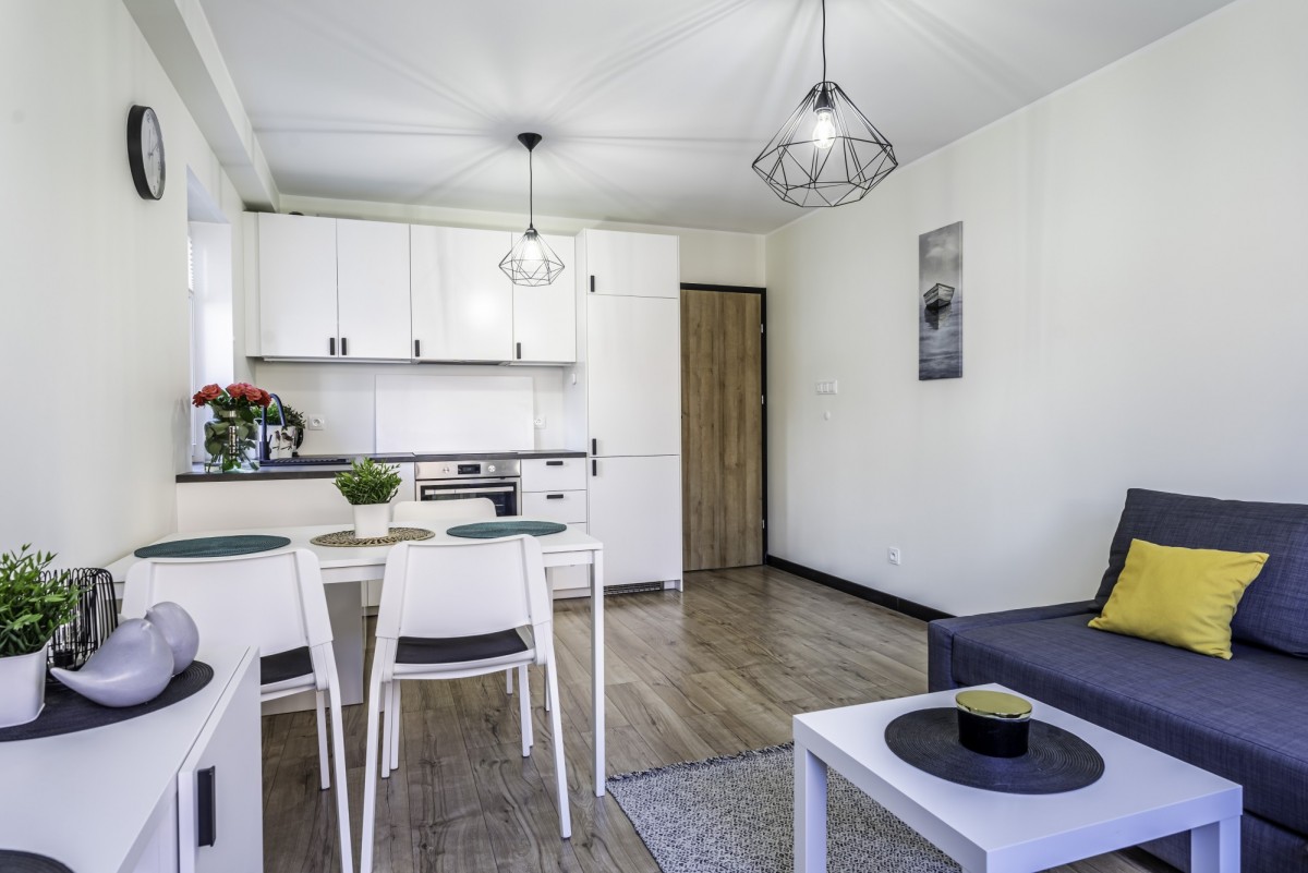 Mieszkanie jest urządzone estetycznie i funkcjonalnie. Wygodne łóżko w sypialni, rozkładana sofa w pokoju dziennym, dużo miejsca do przechowywania ubrań. Kuchnia bogato wyposażona w zastawę kuchenną, akcesoria, garnki, patelnie itp.