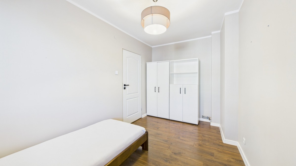 Możliwość wprowadzenia zmian: Sypialnia posiada obecnie jednoosobowe łóżko, które można zmienić aranżując dwuosobową sypialnię.