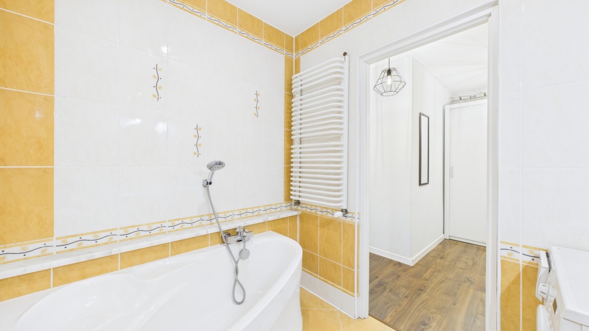 Wygoda i wyposażenie: Kuchnia posiada zabudowę meblową oraz podstawowe AGD (w tym dwie lodówki). W łazience do dyspozycji najemcy wygodna narożna wanna.