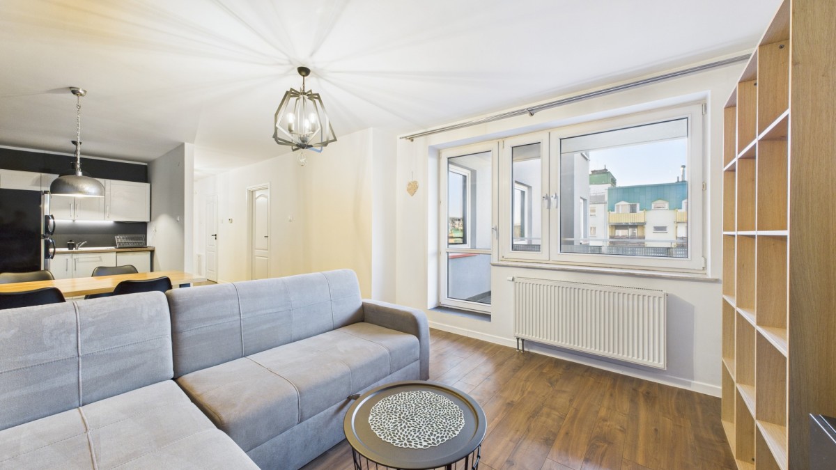 Przestrzeń i światło: Mieszkanie o powierzchni blisko 50 m² znajduje się na 3. piętrze kameralnego budynku po termomodernizacji. Zachodnia ekspozycja okien gwarantuje piękne, naturalne doświetlenie popołudniami.