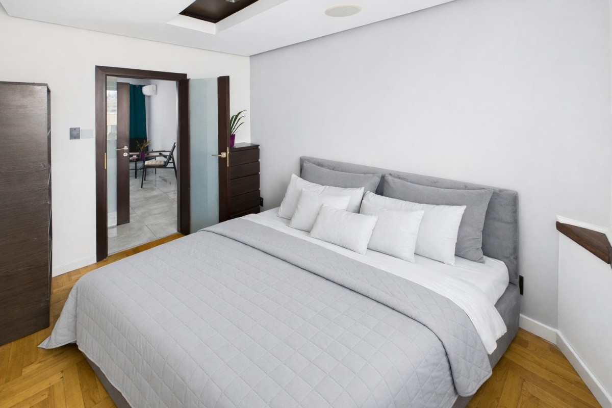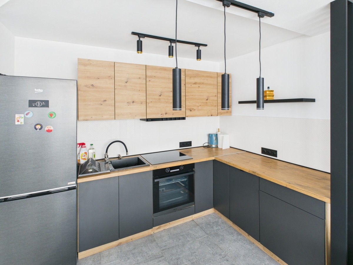 - Mieszkanie jest w pełni umeblowane i wyposażone, m.in. w: pralkę, lodówkę, płytę indukcyjną, piekarnik, zmywarkę, klimatyzację, nowoczesny system oświetlenia sterowany dotykowymi włącznikami