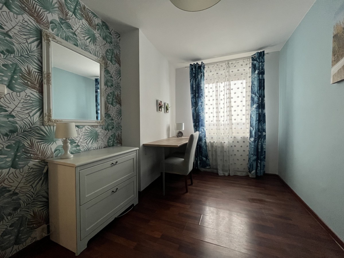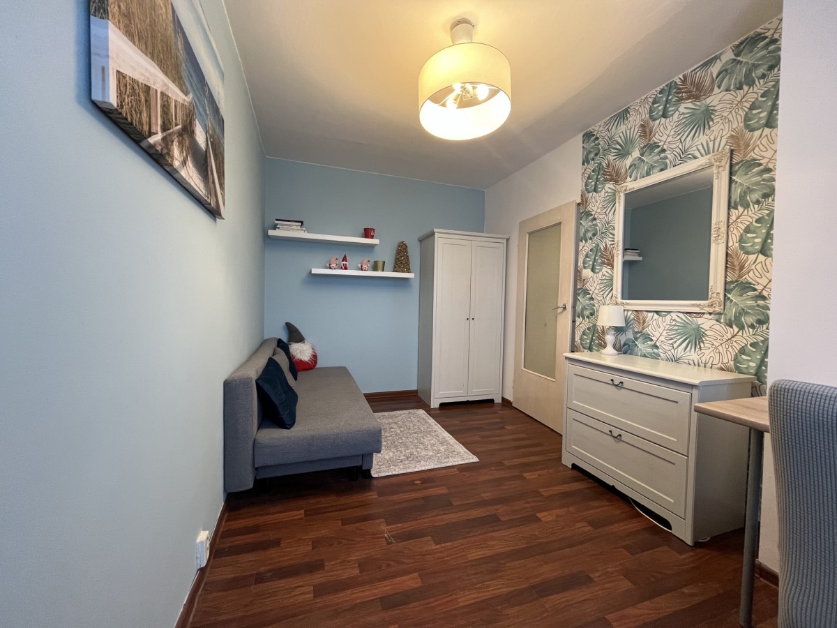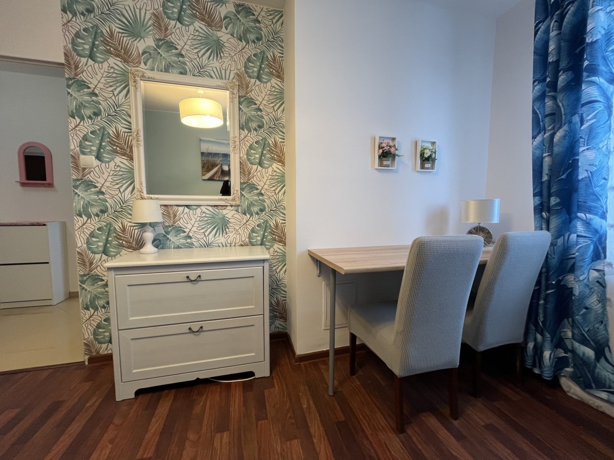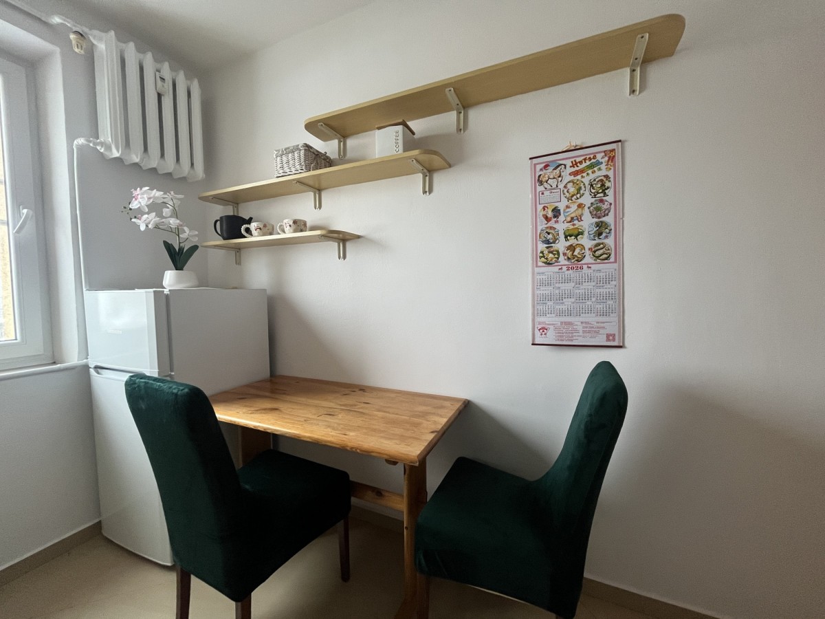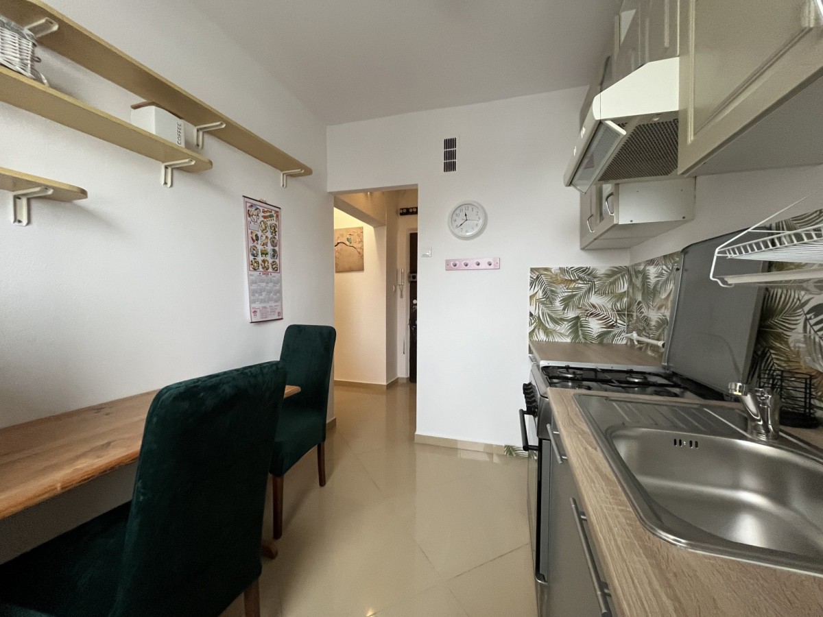 Mieszkanie jest w pełni umeblowane oraz posiada wyposażoną kuchnię i sprzęt AGD, dzięki czemu można wprowadzić się bez dodatkowych kosztów.