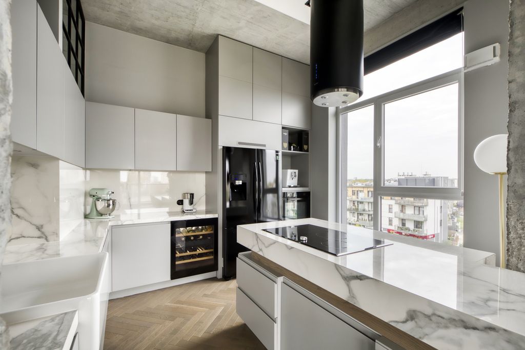 We present a magnificent Penthouse finished according to the original design using the highest quality materials, large-format sintered marble, oak parquet, custom made carpentry,custom 2.90 m tall doors and other stylish solutions. This modern apartment, well designed and furnished with class and taste, is offered fully equipped – ready to move in.