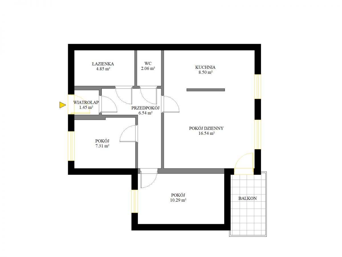 - Powierzchnia:57,54 m2